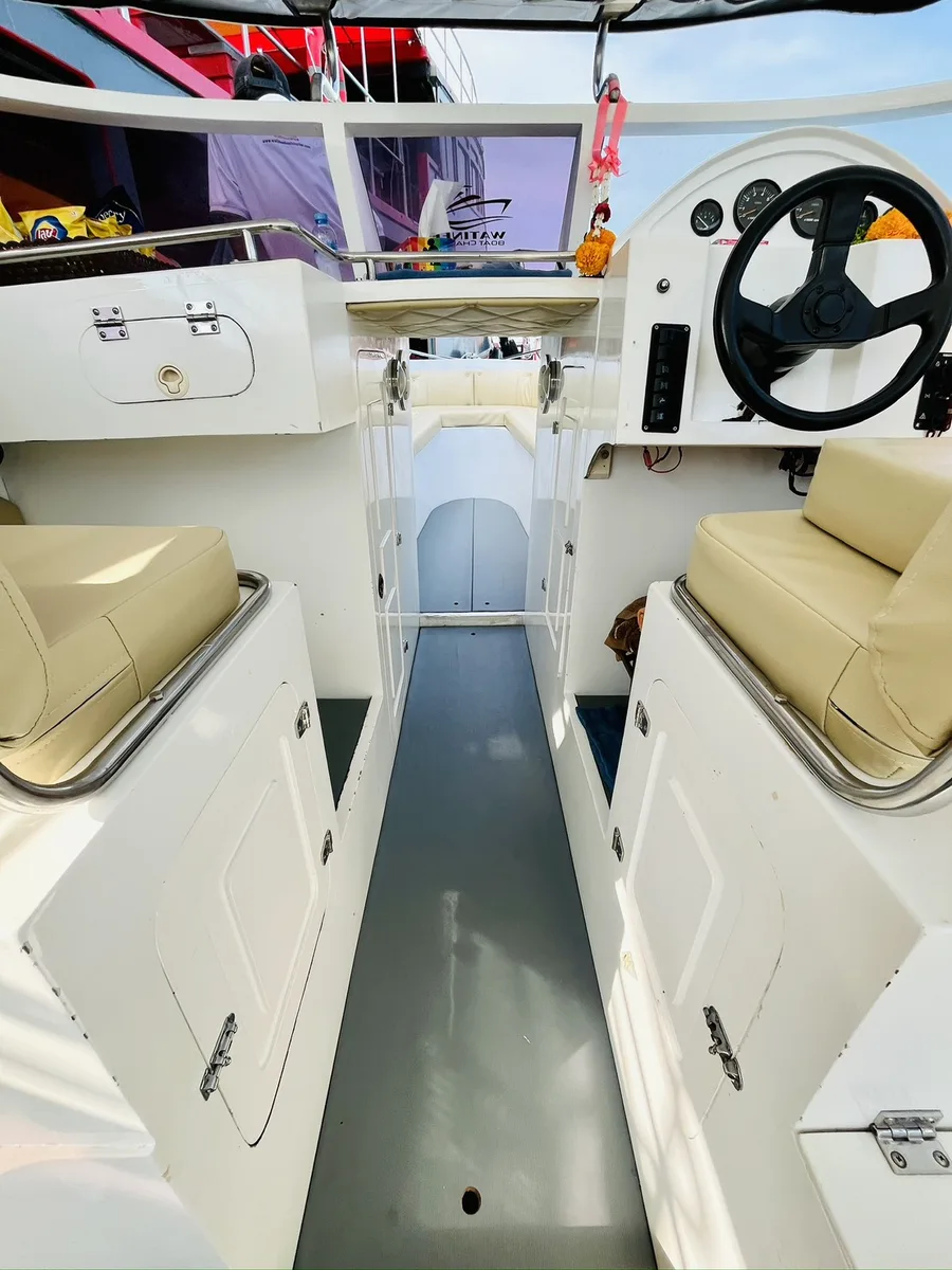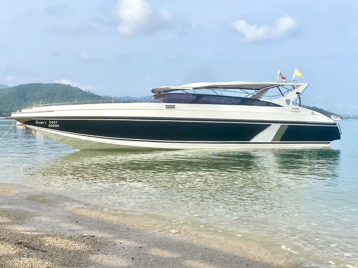 The twin-engine 12-meter speedboat for private Charters at Samui is licensed for up to 24 people, perfect for group size of 12. She guarantees comfortable and fast rides to the islands of Ang Thong Marine Park, Koh Tao and Koh Phangan. Build in toilet, fresh water shower and sound system.