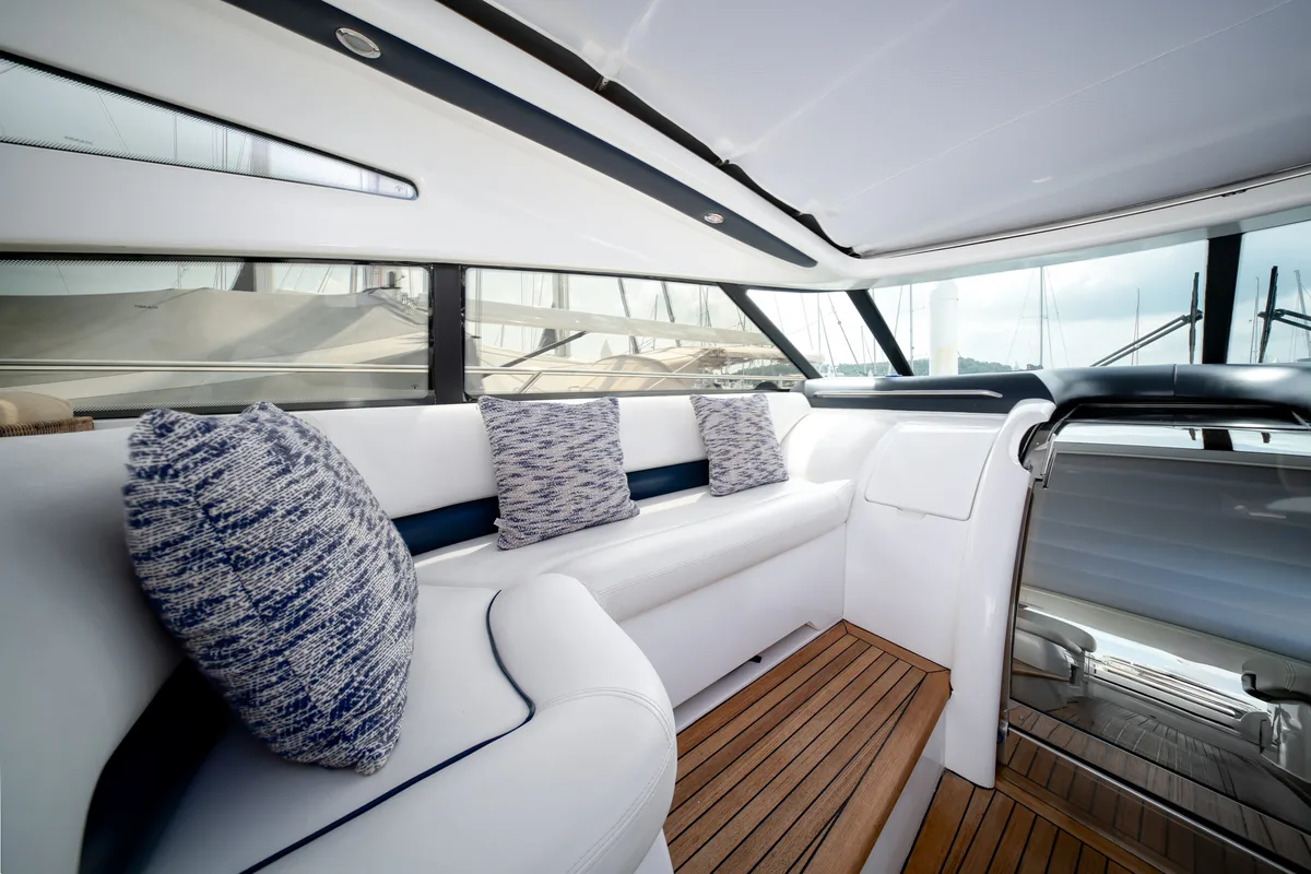Experience luxury aboard Bonnie, our renowned 2018 Princess V58 for charter in Phuket. Accommodating up to 17 guests, this sleek and sportive yacht cruises at a swift 17 knots, perfect for island hopping adventures in Phuket's stunning waters!