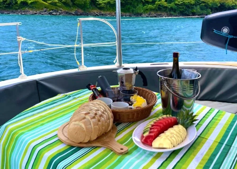 Below deck, 4 cabins and restrooms provide comfort and private zone.