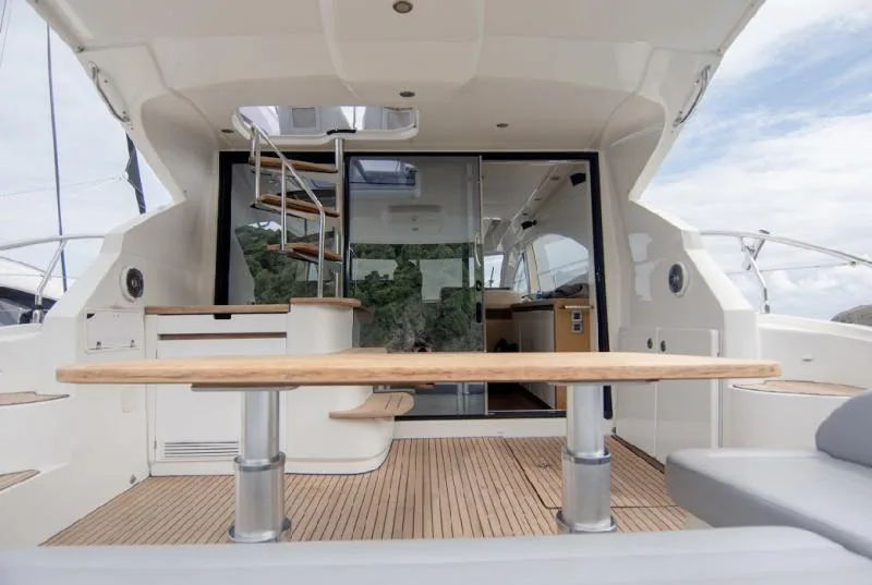 The  French-built Beneteau Gran Turismo Fly 49 is a speedy, well-mannered performer offshore with a layout that’s both straightforward and ultra-roomy. The Charter Yacht offers space for family and friends up to 12 to enjoy incredible luxury.