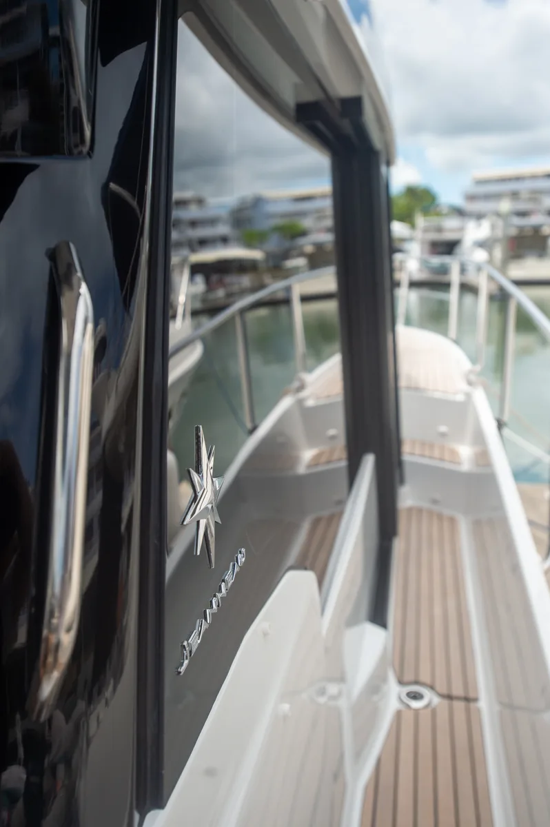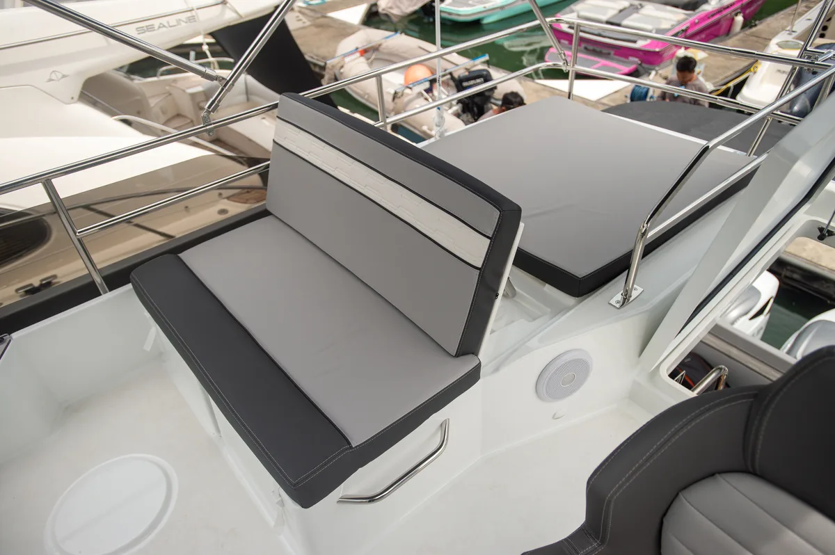 Equipped with a helm station, double bench, and sun deck options, it promises sporty adventures and relaxing moments for up to 8 guests.