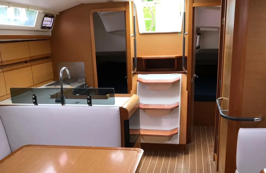 This model from Sunsail is one of the most popular training boats in the world. No wonder, because the spacious layout for easy living on board and the spacious cockpit offer optimal performance on the water with this Charter Sailing Boat.
