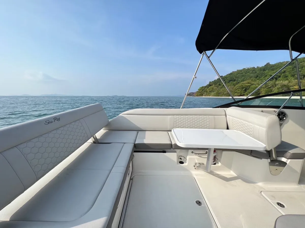 Von Bug bis Heck spiegelt dieses vielseitige Luxus-Speedboot Sea Ray's Engagement für hochwertige Handwerkskunst, intelligente Technik, beeindruckende Sitzplatzkapazität und reichlich Stauraum wider.
