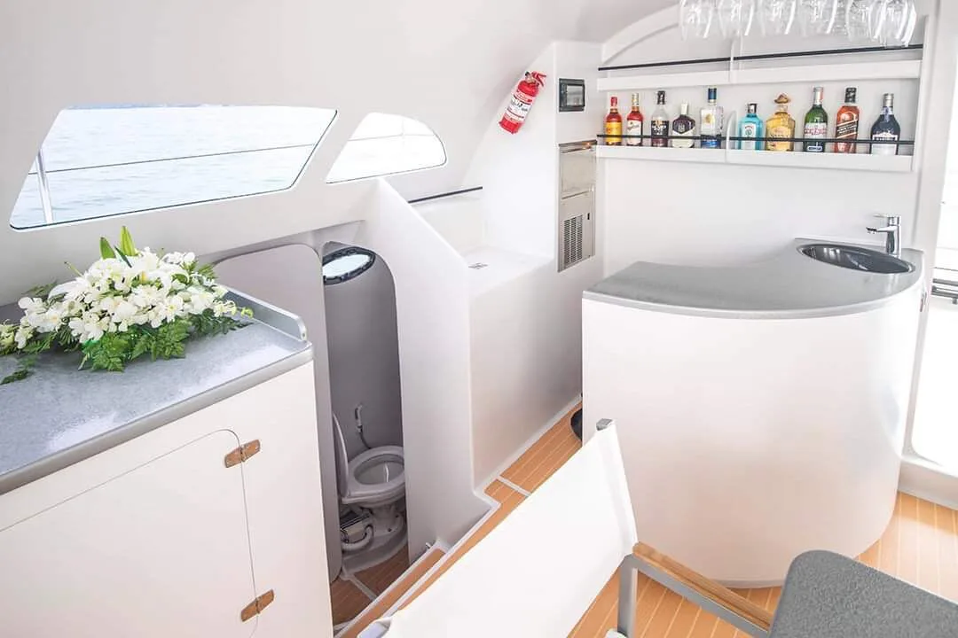 Discovery is a 47ft Stealth - Asia Catamarans Power Catamaran yacht based in Phuket, Thailand. This yacht is a great choice for catamaran charters and yacht weddings.