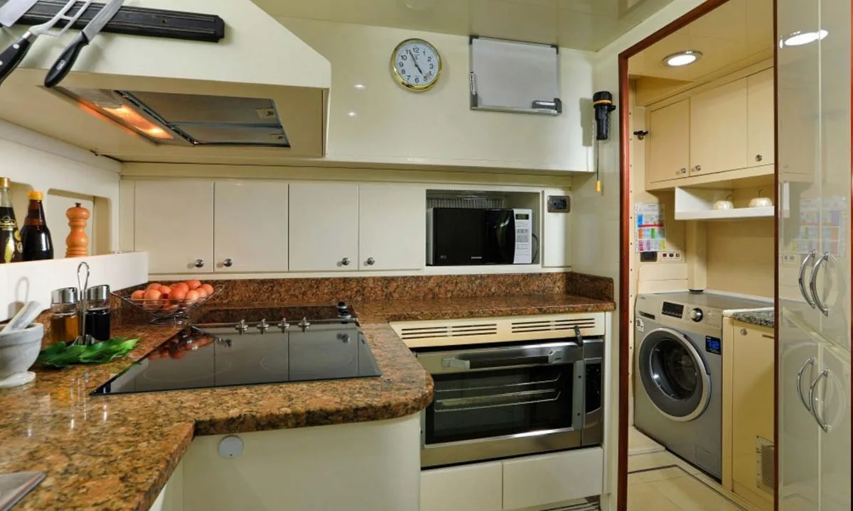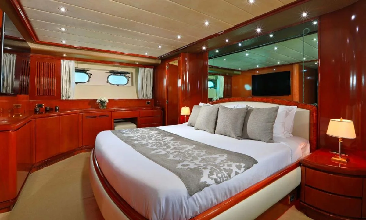The luxury Falcon Yacht is quite powerful with up to 20 knots, and features accommodation for up to 10 guests in 5 cabins.