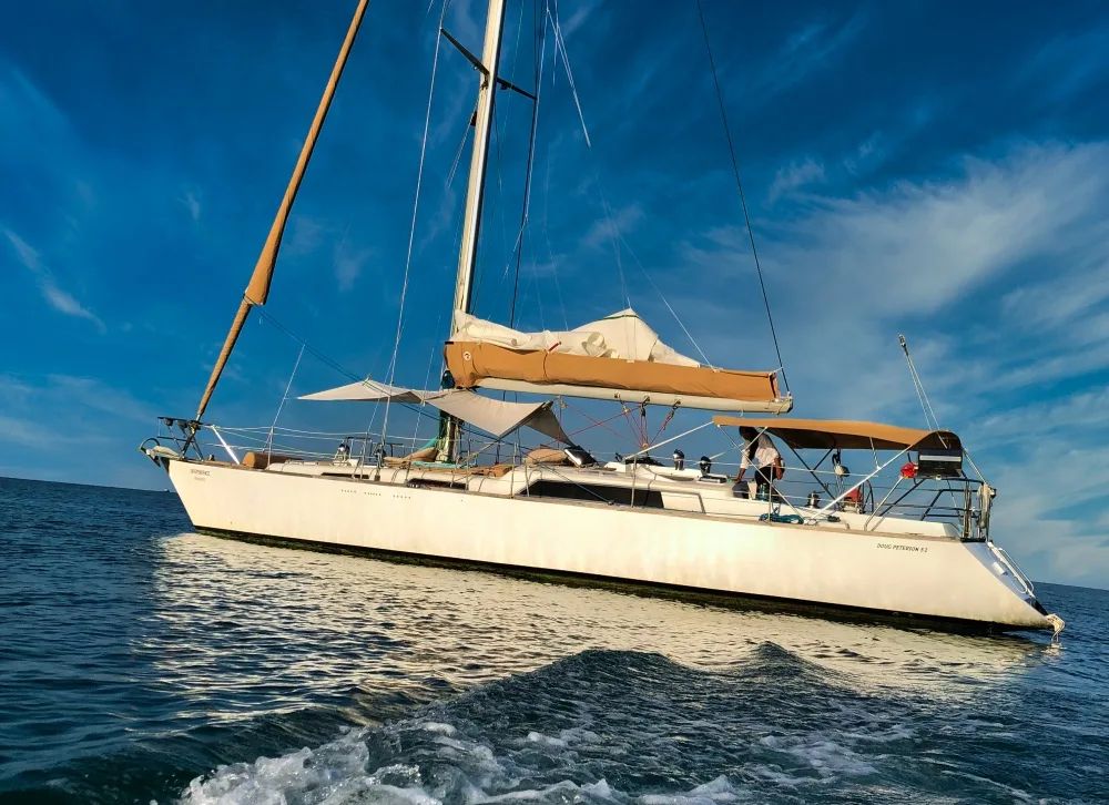 Designed by Doug Peterson, this 52-foot sail sport legend is one of the largest and oldest monohull sailing yacht in Koh Samui. Her interior is made up of solid Burmese teak wood, Italian Alcantara fabric cushions and a galley with a black granite top. She is a good experience for couples, families and groups of friends, offering 3 spacious double cabins and a fully equipped salon.
