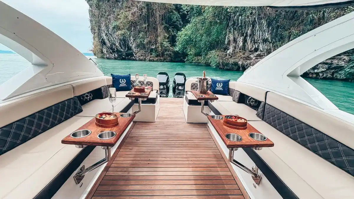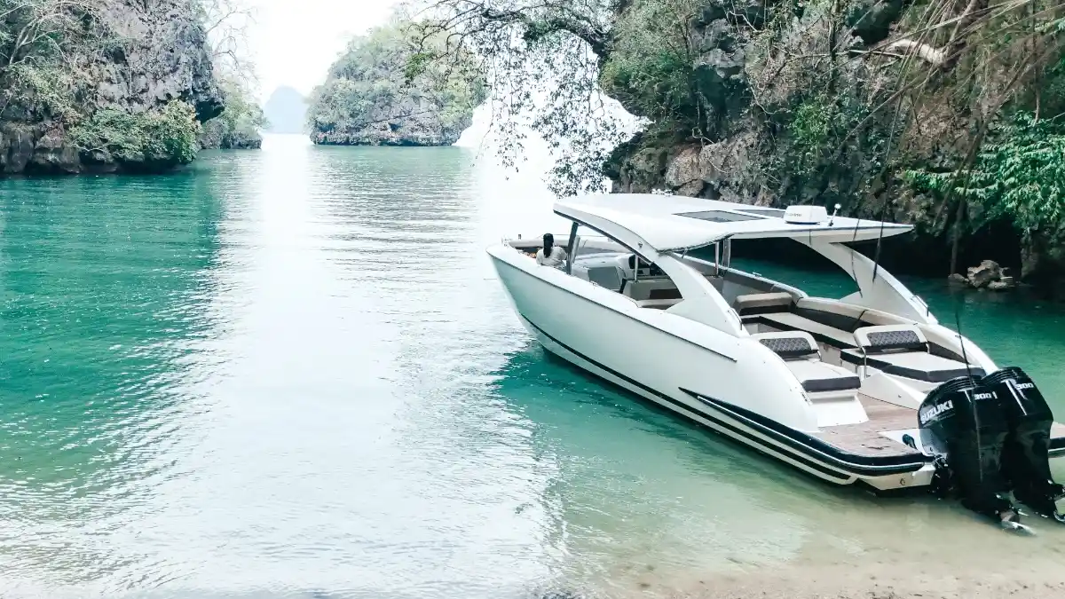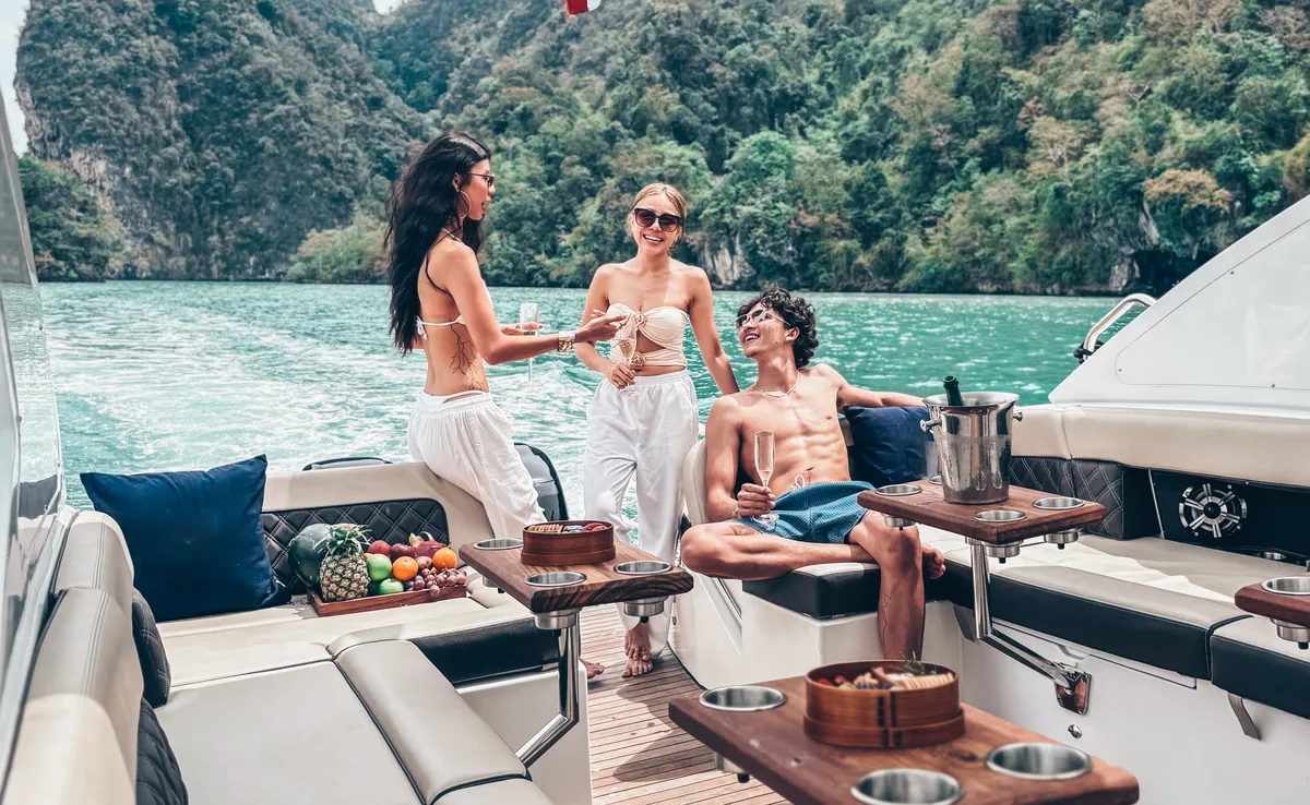Our brand-new 2025 luxury speedboat for private Charter redefines exciting island-hopping in Phuket for up to 20 passengers. Designed for comfort and performance, it offers spacious seating and modern features like high-end sound system.