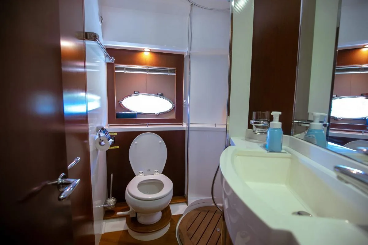 The luxurious yacht features a spacious saloon, a fully equipped kitchen and 3 cabins: 2x VIP cabin and one twin bed cabin.