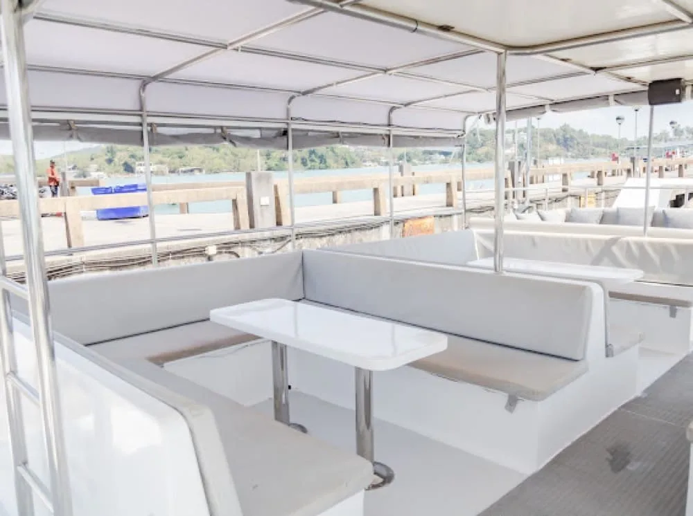 This unique spacious catamaran is ideal for large groups and family celebrations in style: There is space for up to 80 people on the lower and upper decks as well as the front seats - and they can enjoy the wonderful world of Phang Nga with pleasure. Or explore Naka and Khai Island for great water splashing fun.