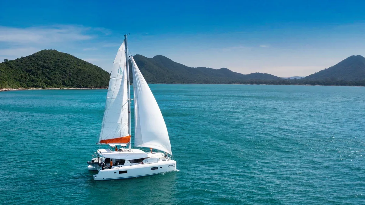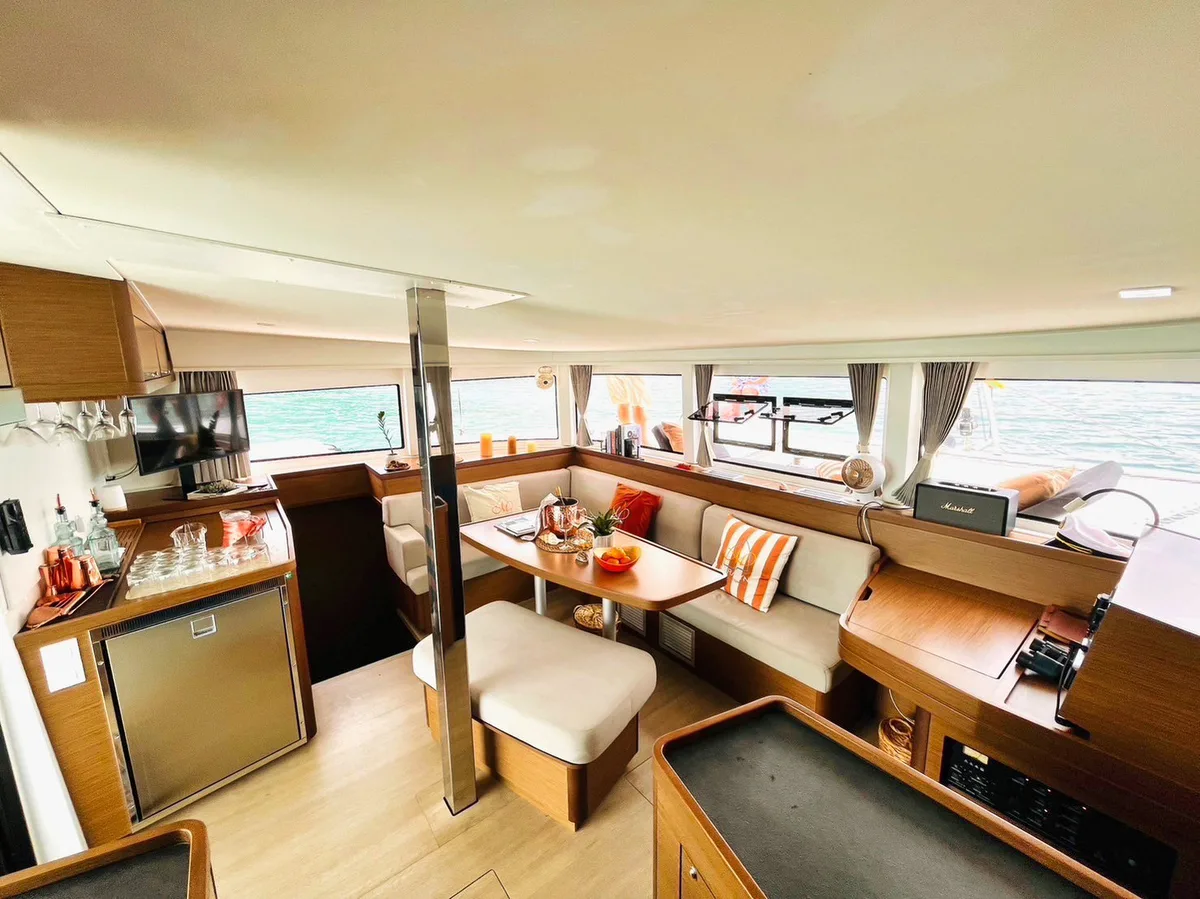 เรือคาตามาราน Lagoon ทันสมัยลำนี้สำหรับให้เช่าใน Koh Samui ออกแบบมาเพื่อความสะดวกสบายและประสิทธิภาพ มีพื้นที่สำหรับแขกรายวันได้ถึง 15 ท่าน ที่พักสำหรับ 8 ท่านใน 4 ห้องปรับอากาศ แต่ละห้องมีห้องน้ำในตัว ทำให้เป็นตัวเลือกที่ดีที่สุดสำหรับการล่องเรือหลายวันรอบเกาะใน Samui