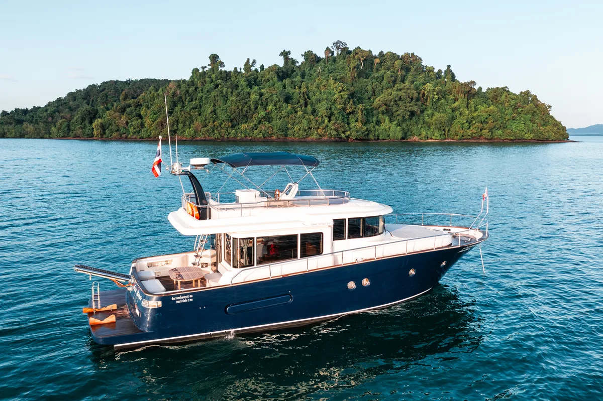 Ever wondered how many shades of blue the Andaman Sea can display in a single afternoon? In Thailand's pristine waters, especially around Phang Nga and Phi Phi Island, each glance offers a new hue that could make Picasso rethink his palette. The Maestro, a stunning Apreamare / Ferretti 51ft motor yacht, is perfectly equipped to navigate these vibrant landscapes while providing luxury amenities that help beat the tropical heat.