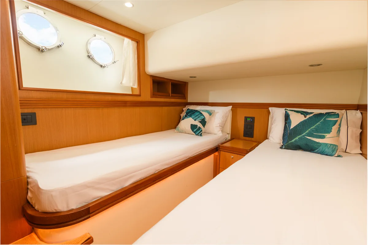 You will cruise at 17 knots on your trip to Phang Nga & Phi Phi Island & Krabi and enjoy amenities like Multiple washrooms, Cabin, Saloon, Multiple Decks, Flying Bridge .