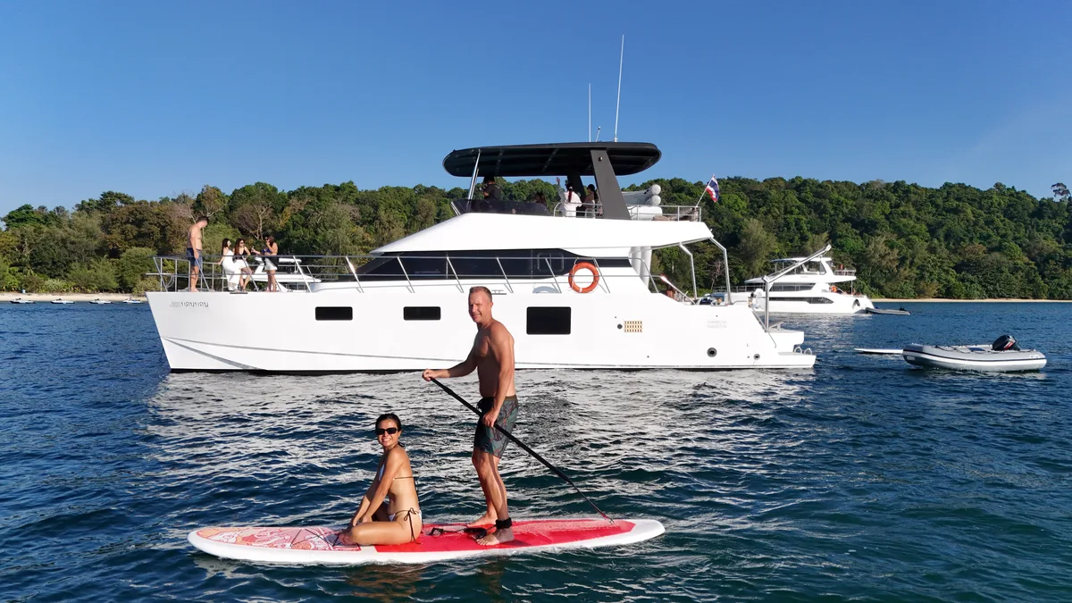 Experience our pristine 52' power catamaran for charter in Phuket – still brand-new after 5 years. Perfect for groups up to 40 guests, ideal for weddings, parties, and corporate events.