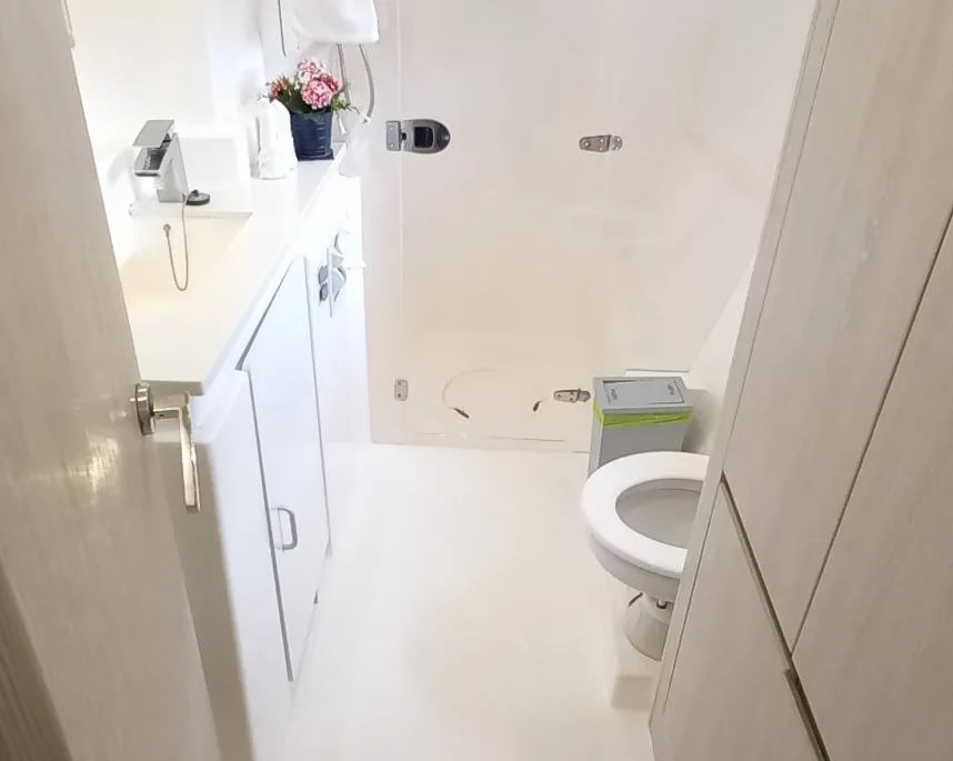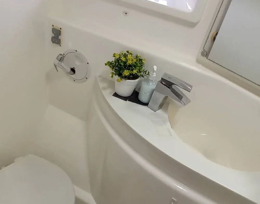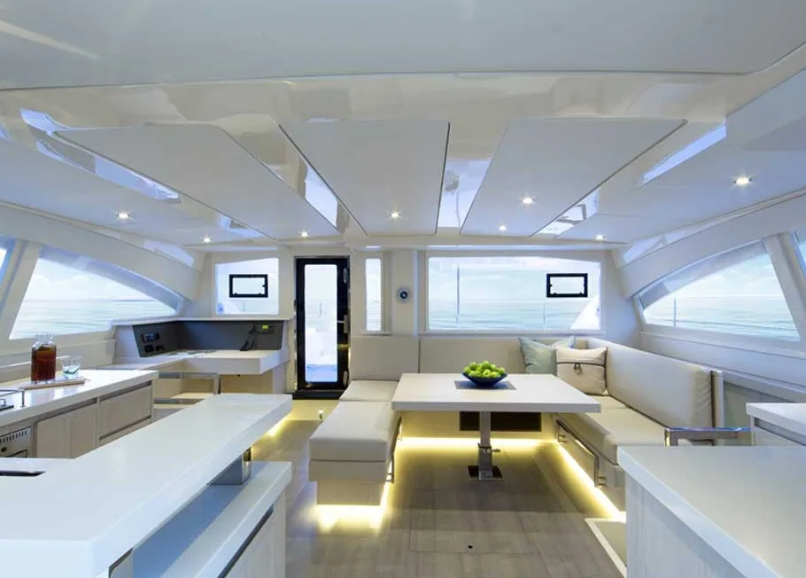 The modern interior runs through all areas including the large air-conditioned cabins with separate shower cells, making the Power Catamara a perfect choice for overnight stays with groups of 6.