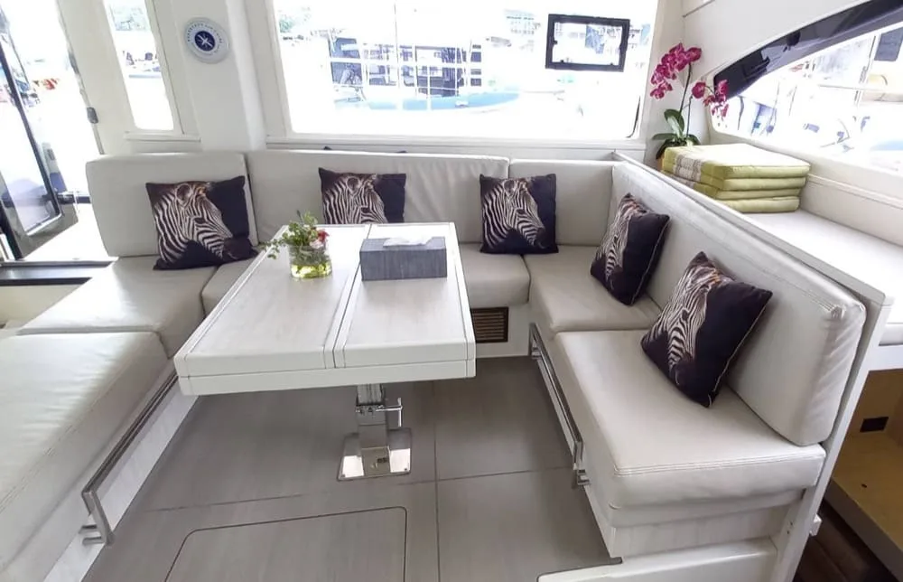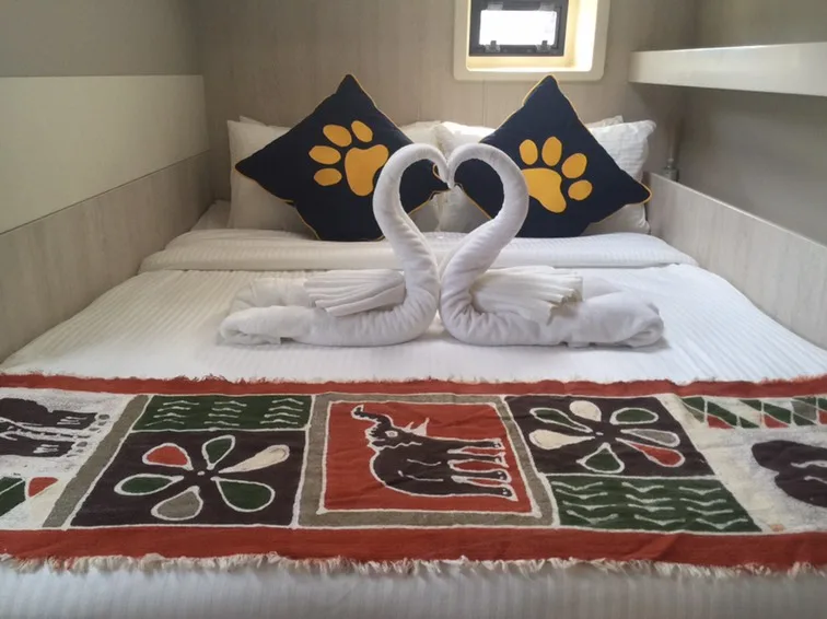 The Leopard 51 Powercat is one of the largest luxury power catamarans for charter in Krabi, which, despite its speed, offers immense space. Slim design, large cockpit, several lounge areas and a spacious flybridge - everything is there for comfortable day trips with up to 25 people who might want to explore distant destinations such as Phi Phi Island.