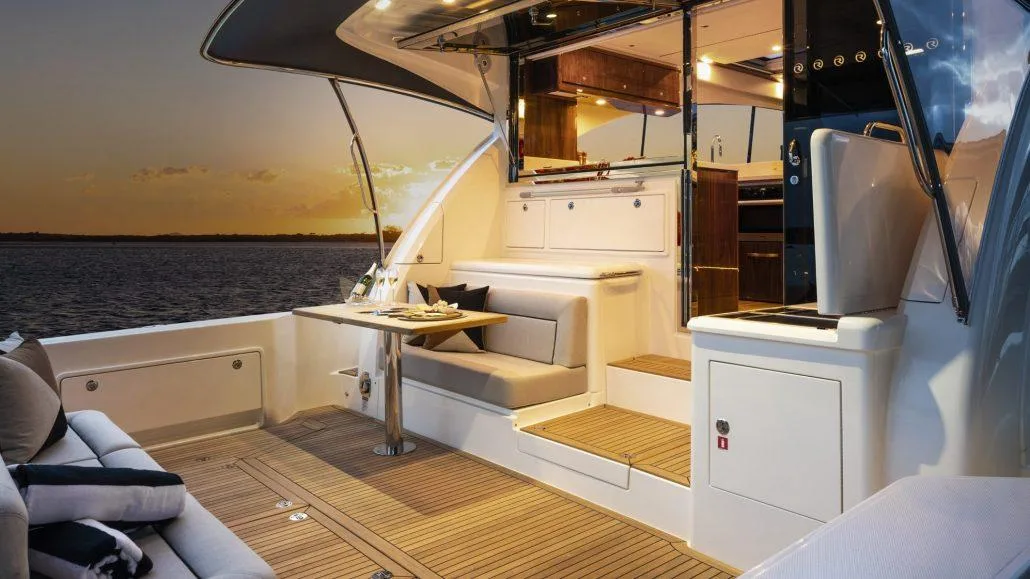 With a capacity of up to 8 day-guests, she offers a spacious flybridge and a fully equipped kitchen and 3 cabins. Fully air-conditioned, of course.